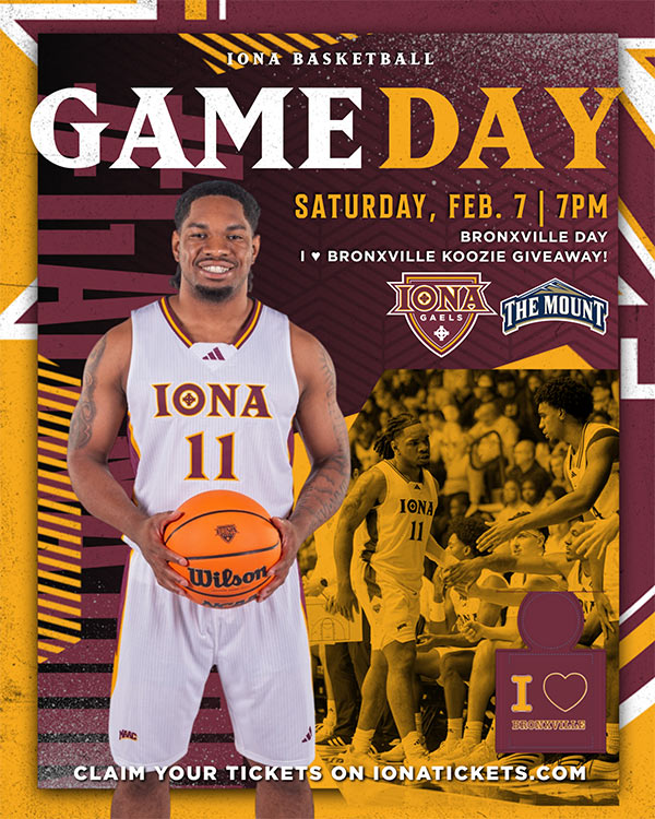 NEW ROCHELLE, NY — Iona University looks forward to celebrating the Bronxville community during its men’s basketball matchup against Mount St. Mary’s in the Hynes Athletics Center on Saturday, February 7, 2026. Doors open at 6 p.m.; tip-off is at 7 p.m.