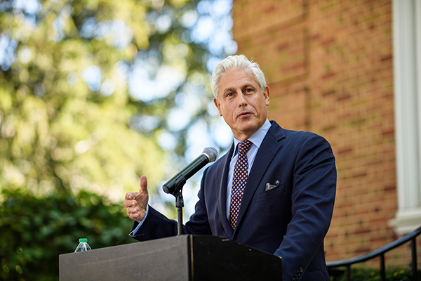 Addressing the crowd, President Carey emphasized the Gabelli Center’s role in advancing innovative pedagogy grounded in Catholic values.