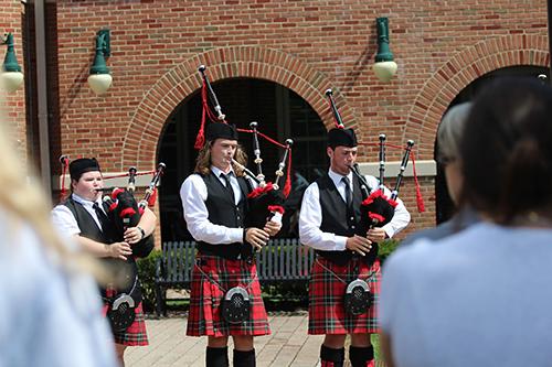 New Rochelle, N.Y. – Gathered under a sunny, blue sky much like the one on September 11, 2001, the Iona University community came together today to remember 15 Iona alumni who died in the attacks on the World Trade Center as well as four who died subsequently due to related illnesses. Following an opening performance by the Iona Pipers, Iona students, faculty, staff and guests also joined in interfaith prayer to meditate on peace.